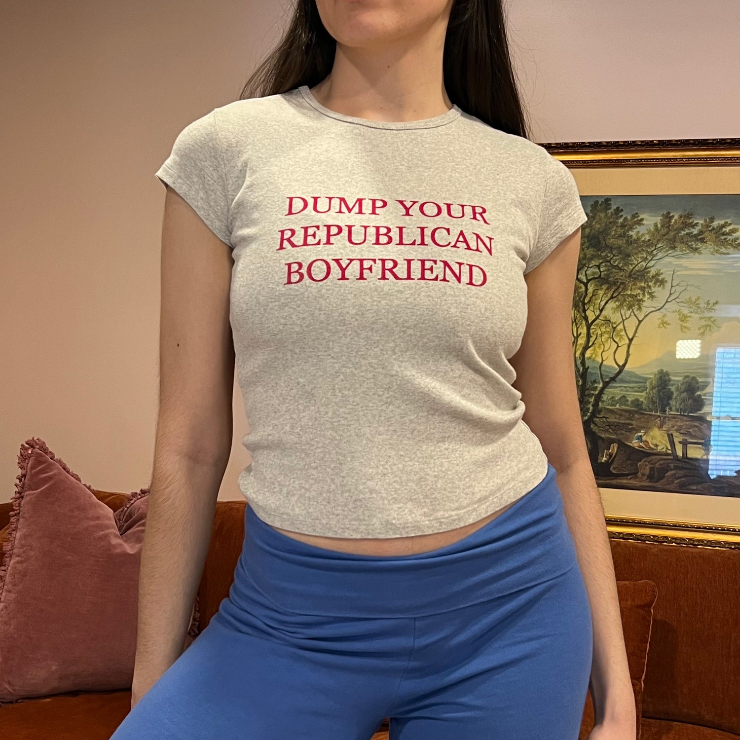 DUMP YOUR REPUBLICAN BOYFRIEND navy t-shirt with white text (XS/S)
