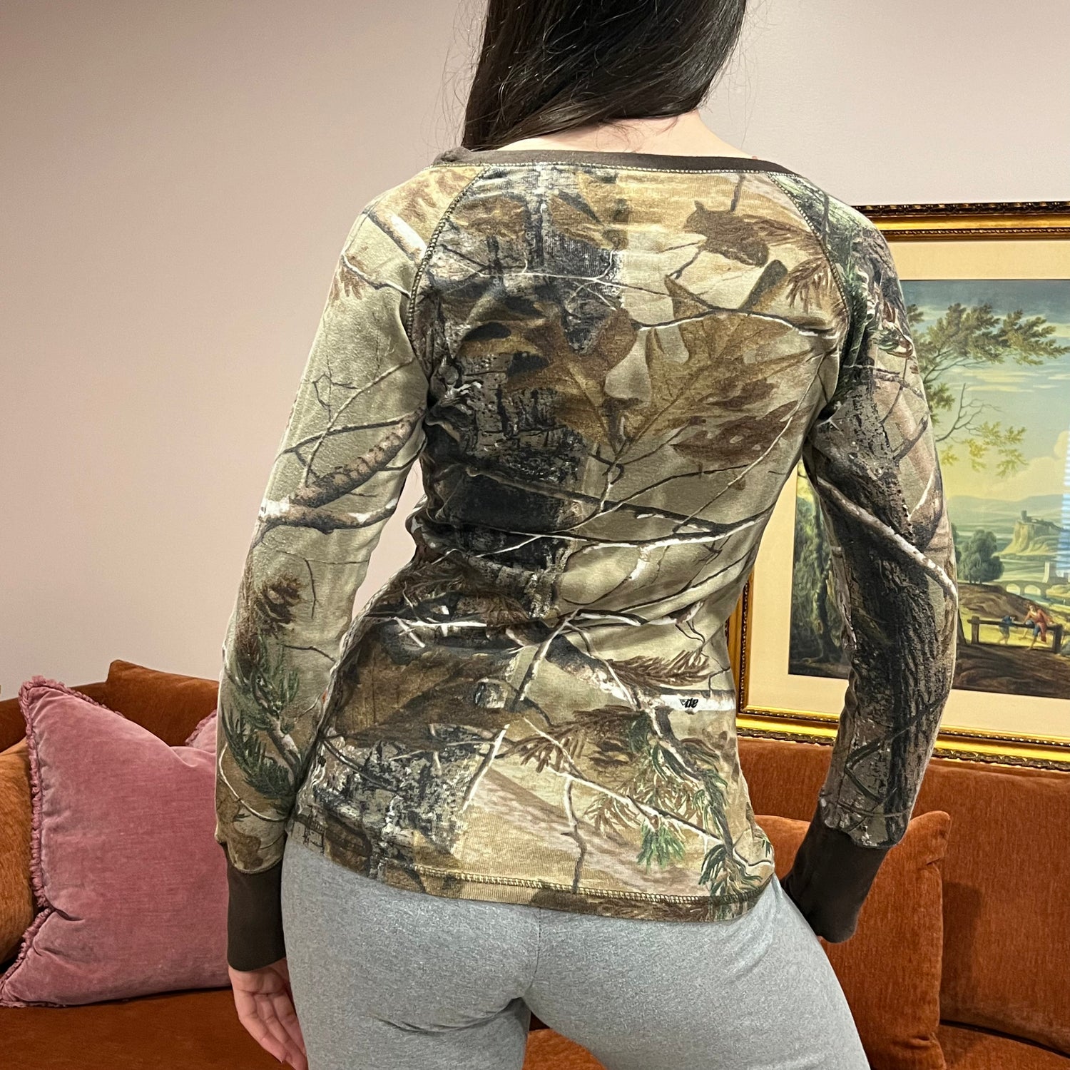 DUMP YOUR REPUBLICAN BOYFRIEND camo long sleeve t-shirt with white text (L)
