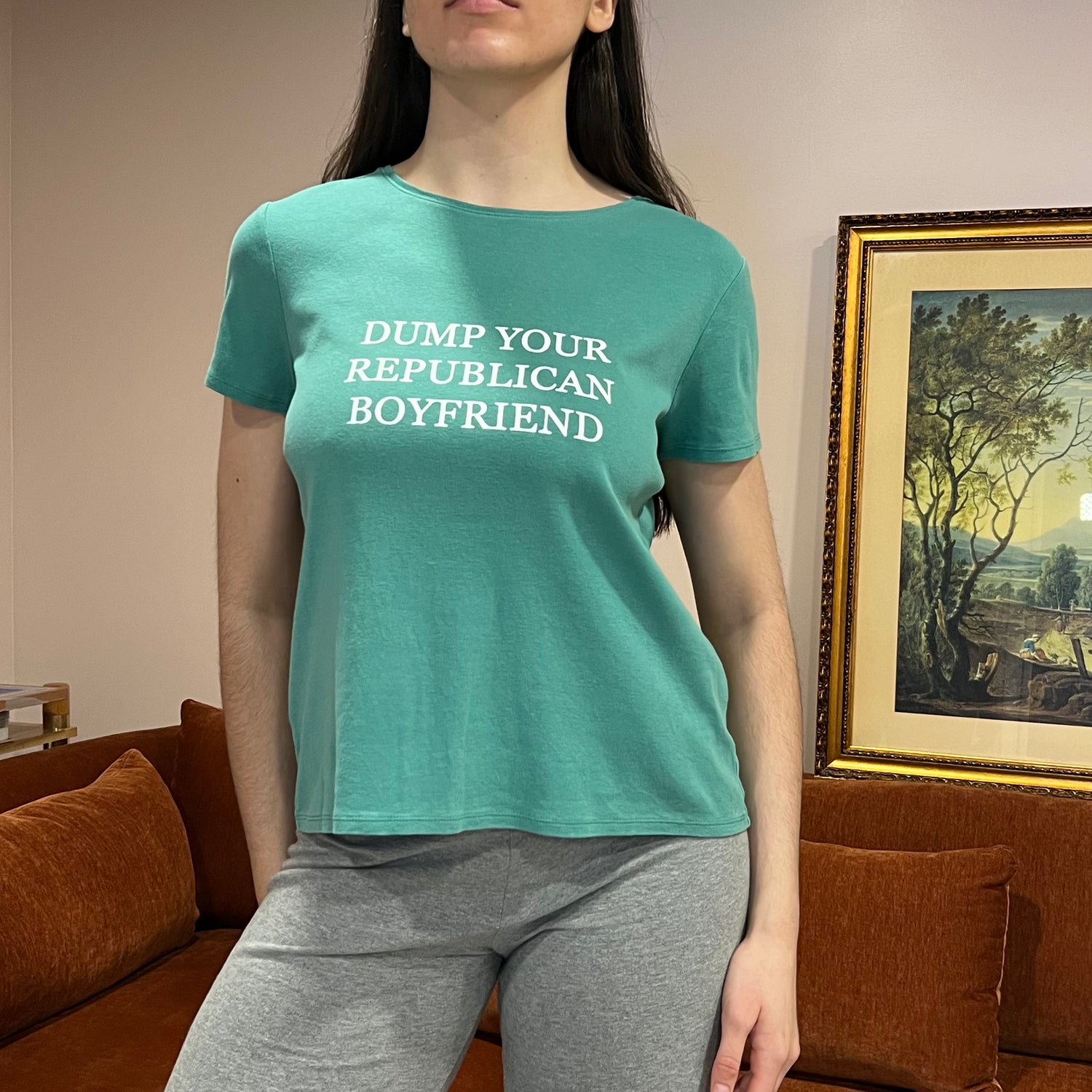 DUMP YOUR REPUBLICAN BOYFRIEND green t-shirt with white text (PM)