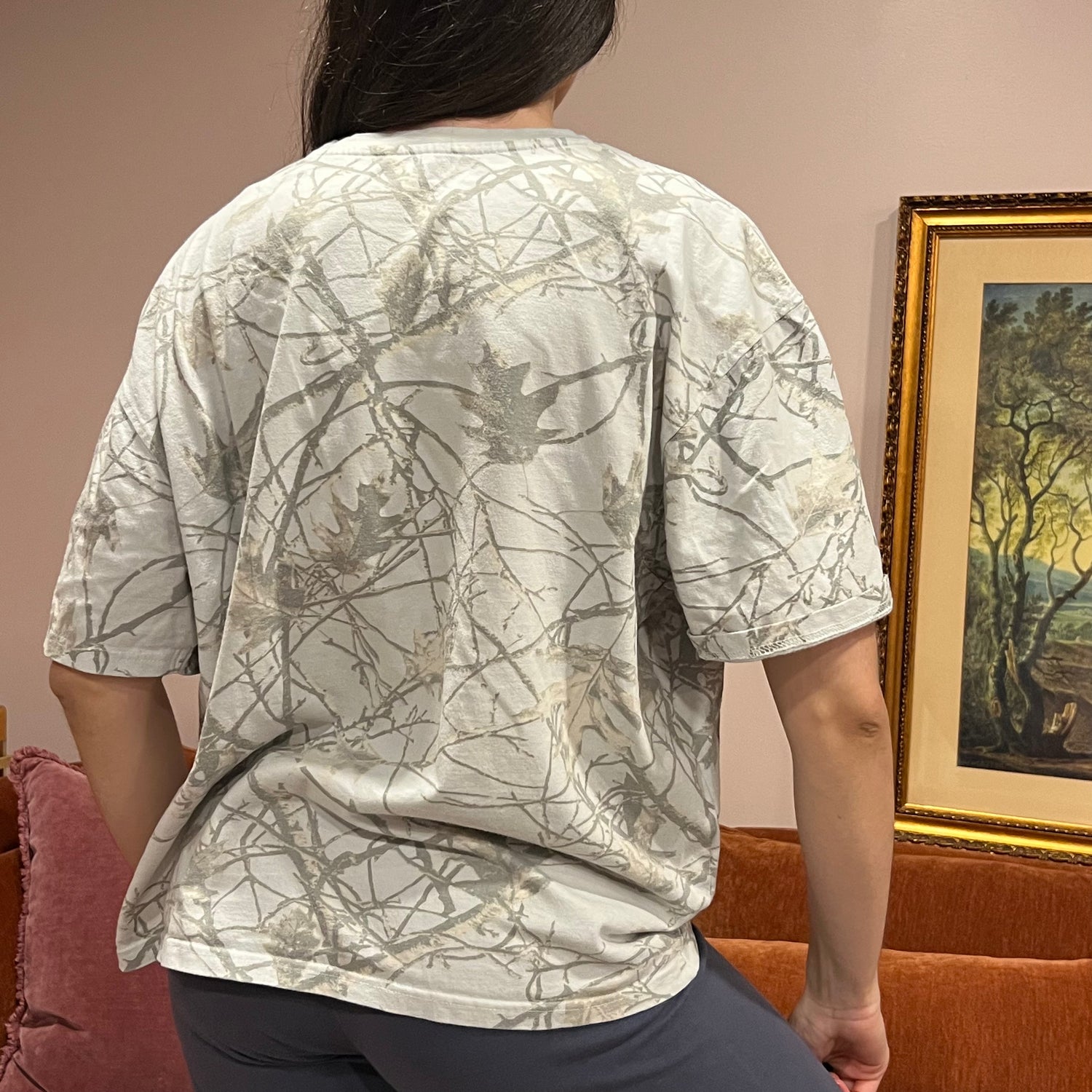 DUMP YOUR REPUBLICAN BOYFRIEND white camo t-shirt with pink text (L)